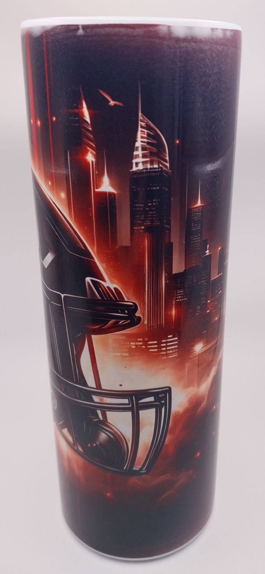 This Multi-Color Depiction of NY Jets Football Team with City Scape Background. 20 oz Steel Tumbler
