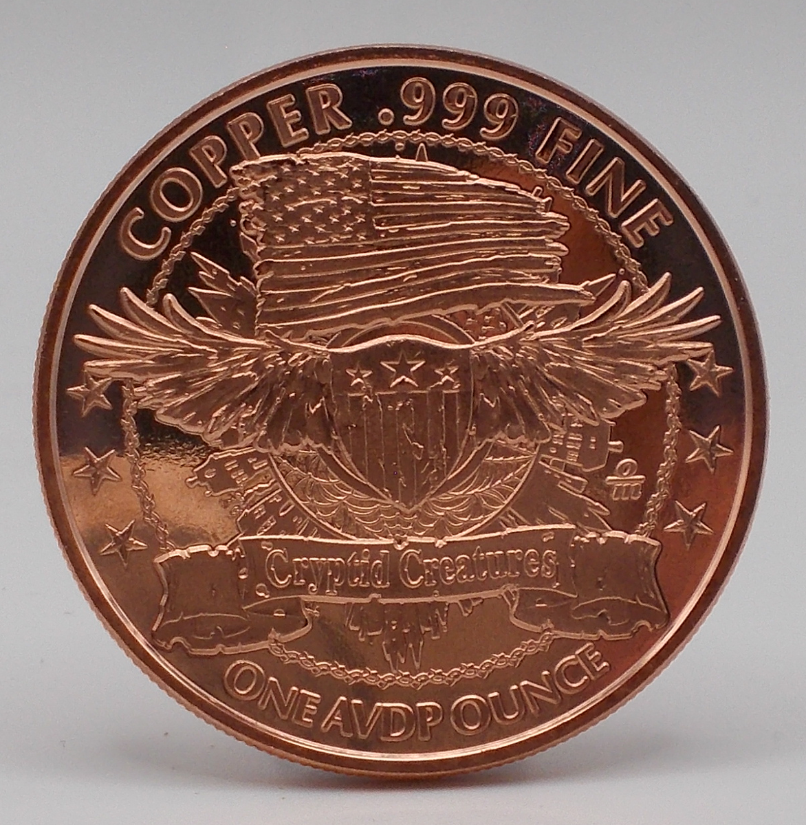 The obverse side of Cryptid Creatures Drop Bear Copper Rounds comes with a depiction of a horrifying twist on the koala bear. Normally viewed as a soft, cute, and cuddly creature, the Drop Bear is a rabid koala bear with a thirst for human blood and the razor-claws teeth necessary to take down any opponent.