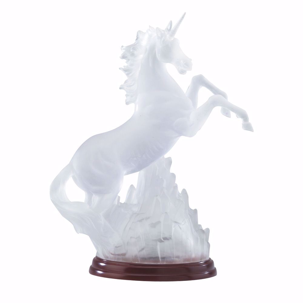 From the pages of myth gallops this majestic unicorn, carved in frosted splendor and glowing with an ever-changing rainbow of light.