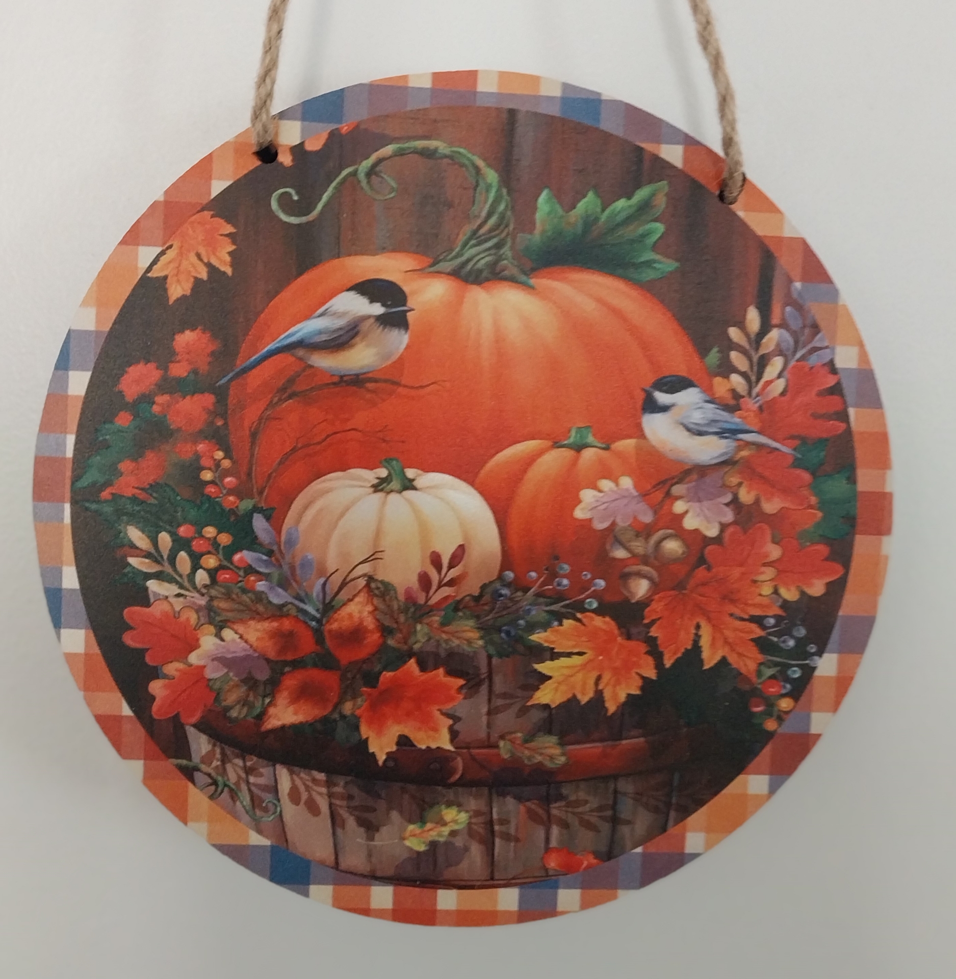 Pumpkin Harvest with flower and Leaves and birds (Wood plaque)